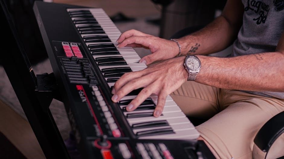 Always ensure the keyboard is completely unplugged from the power outlet before performing any cleaning or maintenance. Refer to the PDF manual for approved cleaning methods and avoid using liquids near the keyboard’s internal components. Ignoring these warnings could result in serious injury or void your warranty. Prioritize safety and consult the manual!